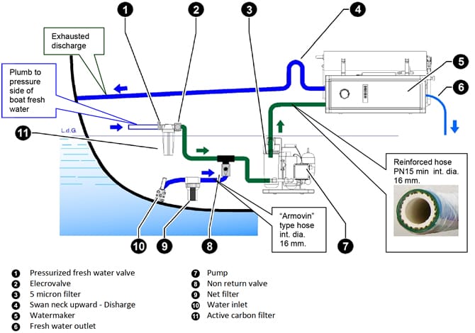Popis: Modular 60 je odsolovač vody ideální pro posádku 4–6 osob na plachetnici o délce 35–45 stop nebo motorovém člunu či katamaránu o délce 30–40 stop. Kapacita je 60 litrů/h (15,8 galonů/h); spotřeba je 240 wattů. Napájení 12–24 VDC nebo AC. Velmi kompaktní jednotky založené na dělených membránách. Široký výběr výkonového rozsahu (až 500 litrů/h) pro uspokojení všech potřeb. K dispozici jsou 3 možnosti ovládání. Technické údaje:
