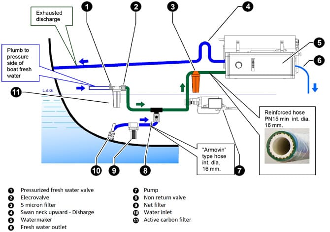 Popis: Modular 100 je odsolovač vody ideální pro posádku 6–8 osob na plachetnici o délce 45–55 stop nebo motorovém člunu či katamaránu o délce 35–45 stop. Kapacita je 100 litrů/h (26,4 galonů/h); spotřeba je 400 wattů. Napájení 12–24 VDC nebo AC. Velmi kompaktní jednotky založené na dělených membránách. Široký výběr výkonového rozsahu (až 500 litrů/h) pro uspokojení všech potřeb. K dispozici jsou 3 možnosti ovládání. Technické údaje: