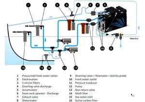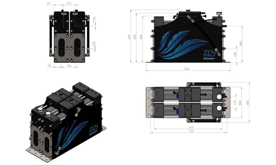 Popis: ZEN Twin je založen na dvou nezávislých odsolovacích zařízeních ovládaných jediným dálkovým dotykovým panelem, který nabízí možnost ovládat oba stroje nebo pouze jeden. Obě jednotky mohou být také napájeny různými zdroji energie. Maximální flexibilita a redundance. Všechny komponenty jsou integrovány do hlavních rozvodů a existuje jen velmi málo externích komponent, jako jsou armatury, potrubí, ventily. Díky těmto vlastnostem jsou odsolovače Zen velmi kompaktní a mají speciální ultraplochý design. Zen je ve skutečnosti navržen tak, aby se vešel do stísněných prostor a lze jej instalovat v jakékoli poloze, horizontálně i vertikálně. Není o moc větší než kufřík! Zen je vybaven systémy rekuperace energie nové generace, které snižují spotřebu elektřiny na minimum.